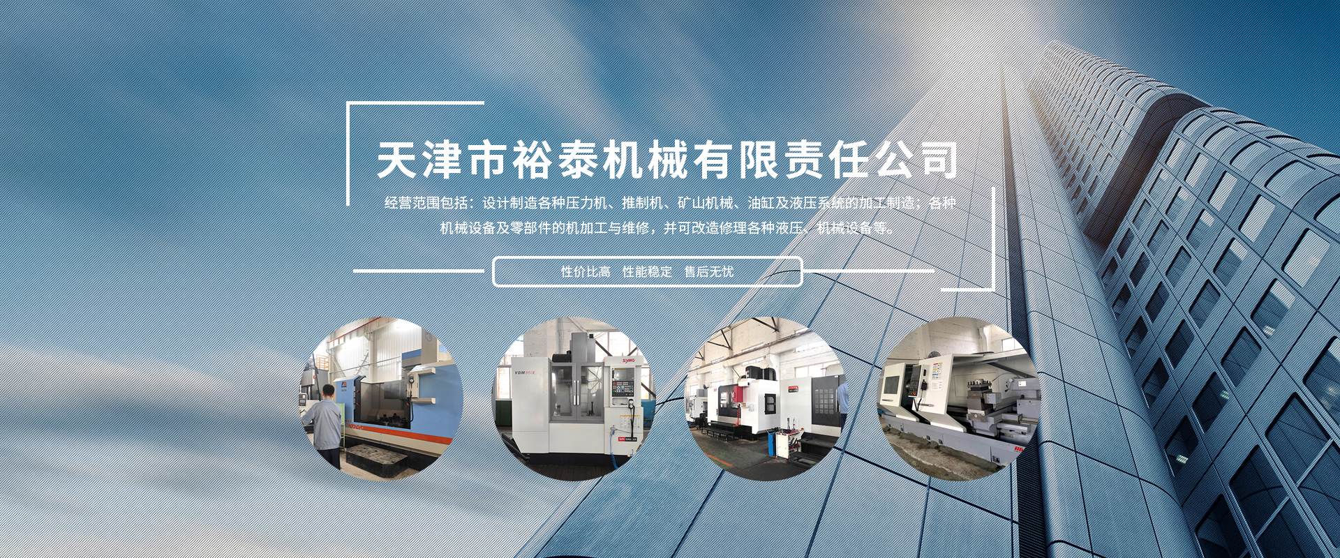 天津市裕泰機械有限責任公司成立于1998年,多次被區、鎮政府評為文明企業,公司占地面積7500平方米,四個生產車間30多臺配套生產設備,經營范圍包括:設計制造各種壓力機、推制機、礦山機械、油缸及液壓系統的加工制造;各種機械設備及零部件的機加工與維修,并可改造修理各種液壓、機械設備等。經過不斷的努力創(chuàng)新我公司成為中國第一重型機械廠、第二重型機械廠、上海重型機械廠、首鋼、鞍鋼、南鋼、北京冶金自動化設計院、北京電力設備總公司等多家公司的加工基地,經合作我們產品也銷往德國、意大利、美國、日本、印尼等國家和地區,并已在一些國家重點項目中使用。